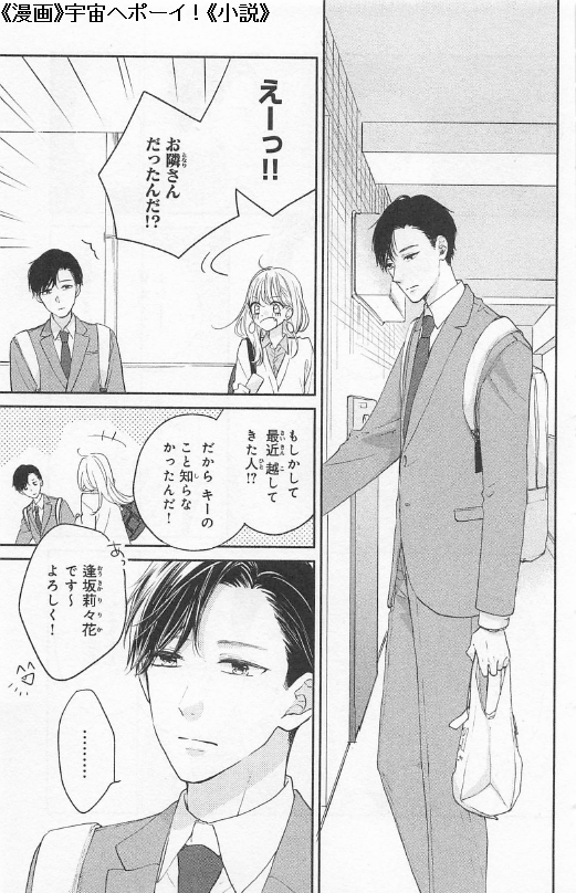 しかし本書は少女漫画であった。シチュエーションとメインの2人の造形に凝るのは掲載誌「別冊フレンド」だなぁという印象を受ける。そして毎度「別フレ」作品では言っているが、シチュエーション以上の感動に乏しい。本書も なぜ独身の新人サラリーマンが、家族向けであろう賃貸マンションに住むのか合理的な説明がなくてモヤモヤする。結局は間接的な『L♥DK』(渡辺あゆ著)がやりたいんだなぁという意図が見え透いて さげぽよ である。また莉々花父子が日野を善人認定するのが早すぎる。家に招く善意は分かるが、年頃の娘に初対面の若い男を接近させるのは不自然だし、日野が莉々花を2人きりでご飯に誘うのも、莉々花がホイホイと呼び出されるのも漫画ならではの早い展開である。新人作家である作者には時間(連載の回数)がないのは分かるが、恋愛初心者なのに莉々花が尻軽に見えてしまっている。